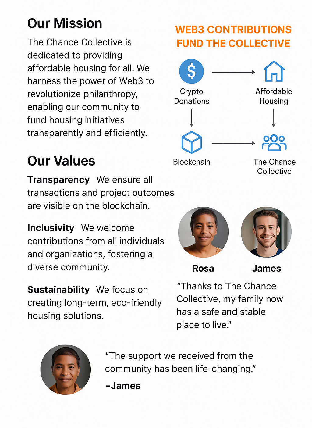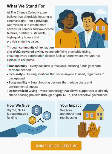 ✔ Decentralized Giving – Web3 technology allows supporters to directly shape housing projects through crypto, NFTs, and collective governance.
