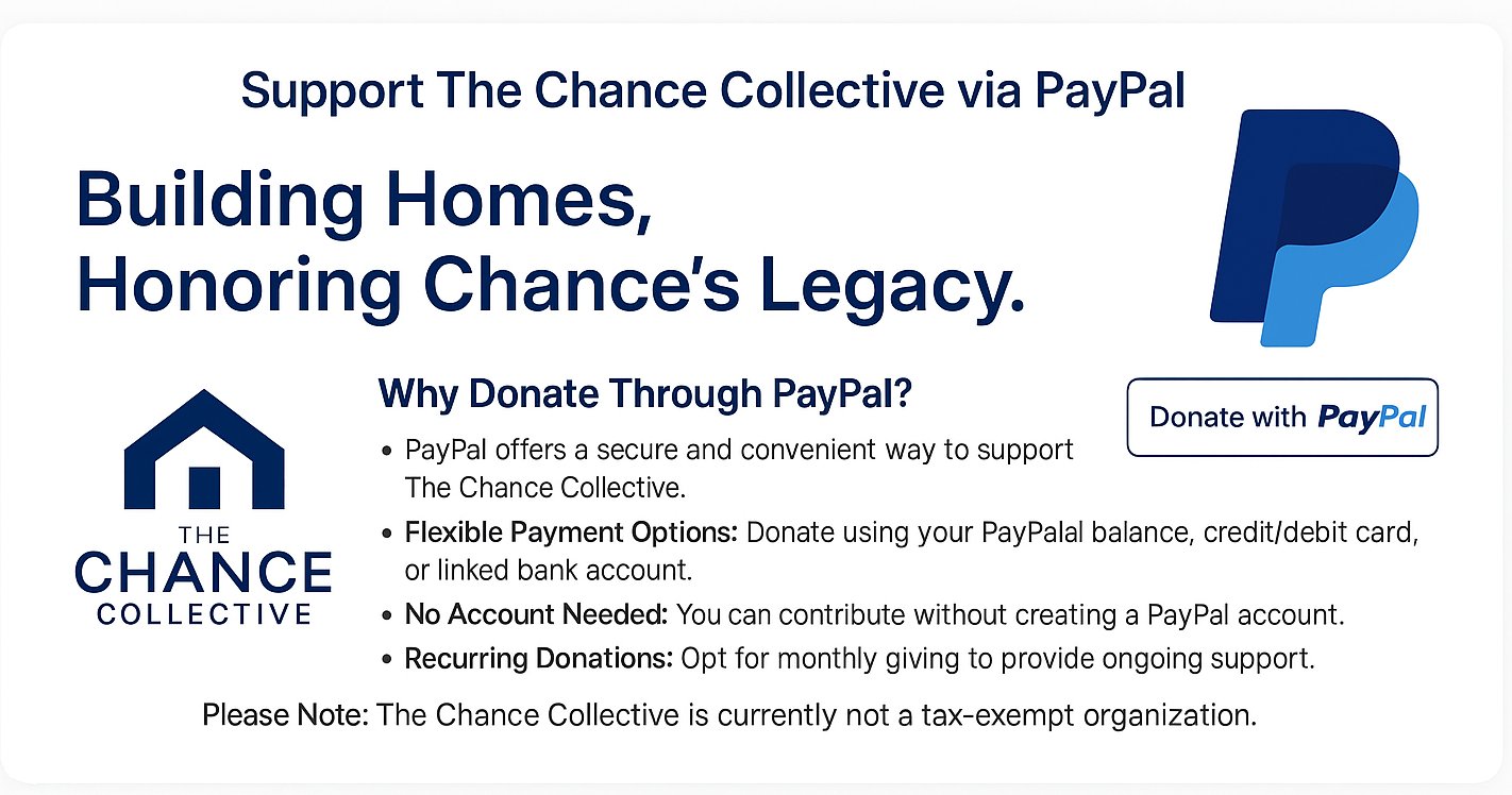 PayPal offers a secure and convenient way to support The Chance Collective.